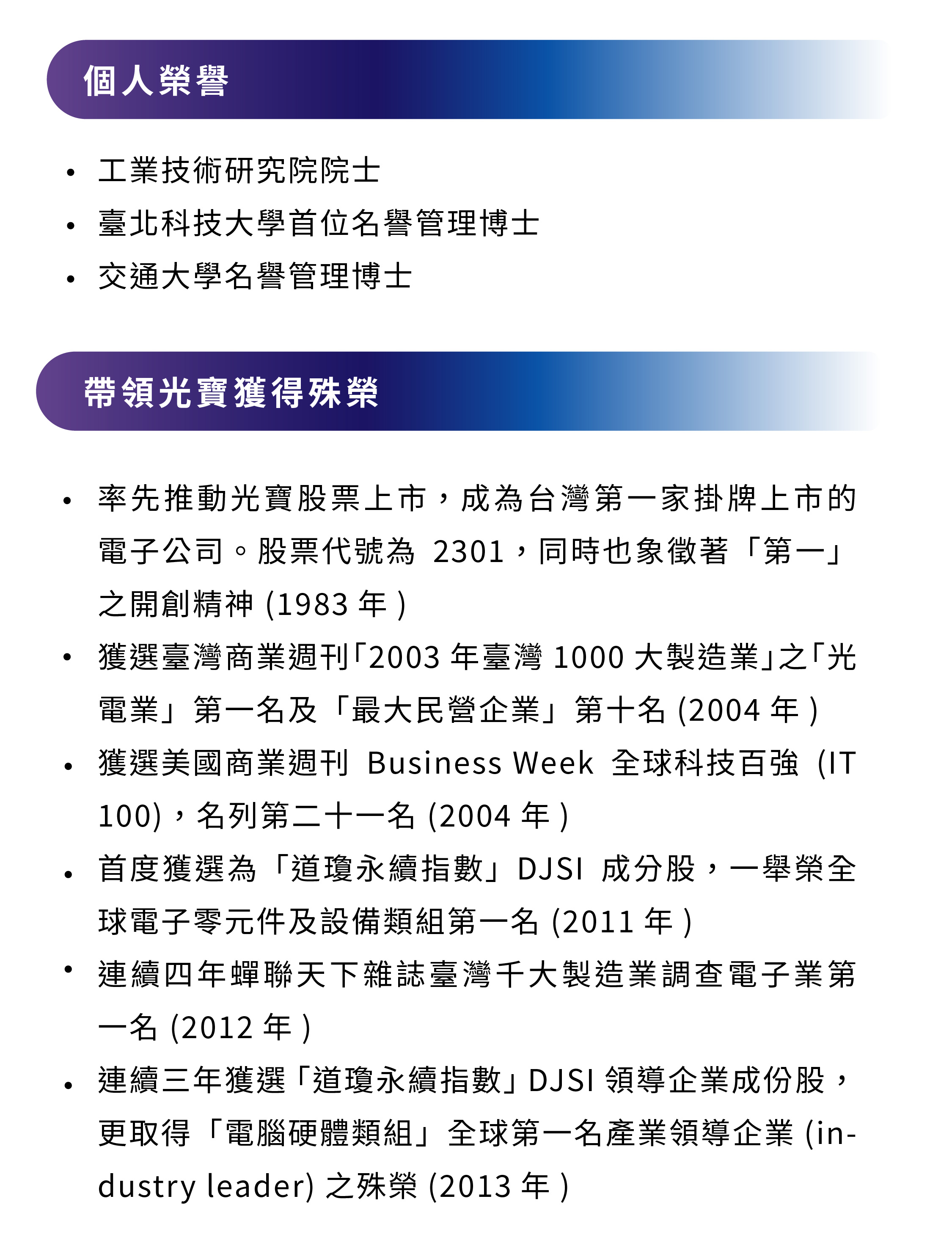 秉持以人為本的立業初心,宋先生凡事以員工福祉為先。除了有效整合集團資源,致力精實聚焦,優化營運體質並確保永續發展,宋先生更用心打造兼具活力與展望的愉悅工作環境,讓每位光寶人,都能實現個人職涯成長,群策群力實現共同願景。